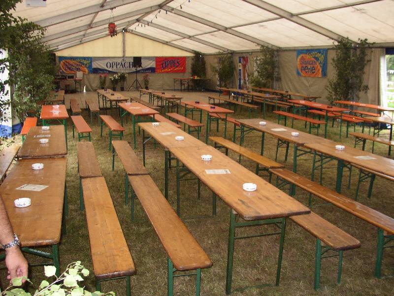 So mit Werbung und Blumenschmuck sieht das Festzelt gleich viel besser aus.