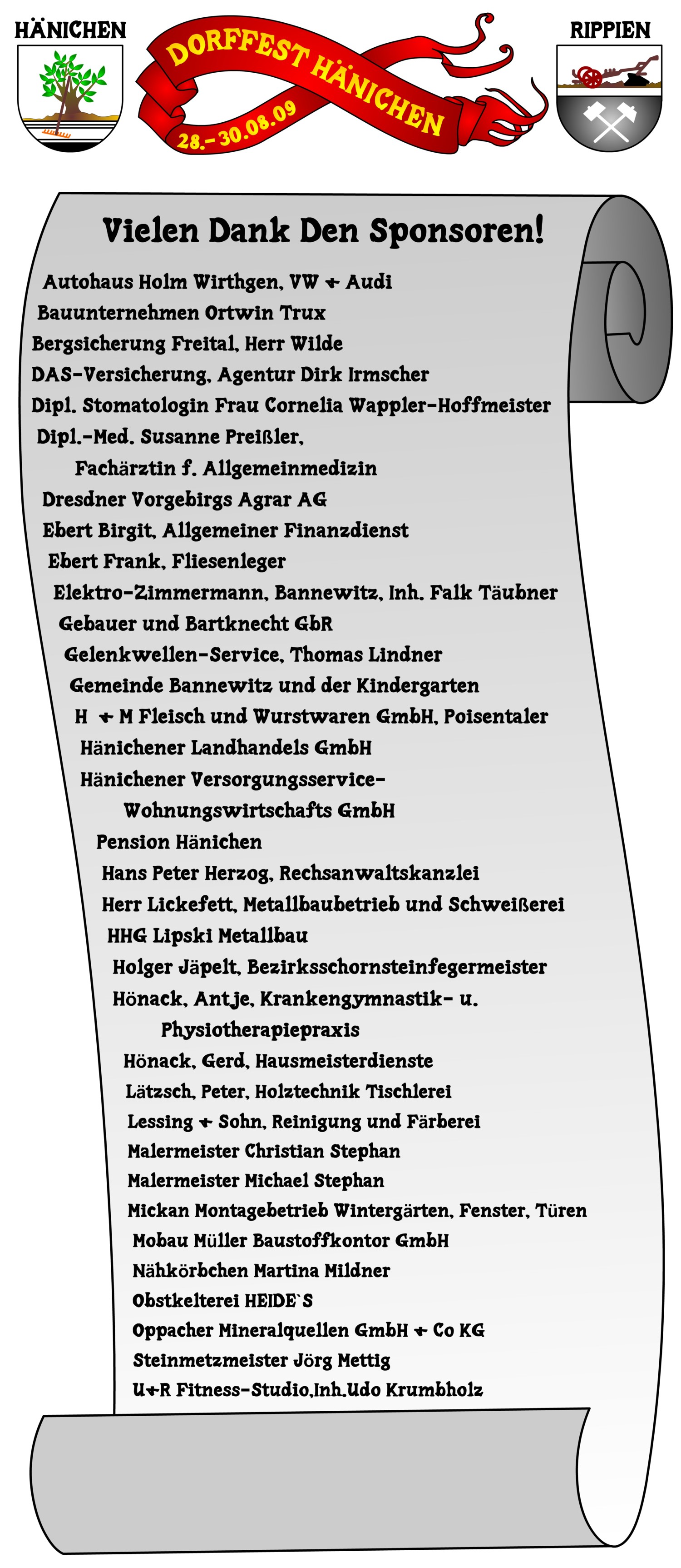 | 10.06.2006 Das 11. Volleyballturnier um den Wanderpokal des Bürgermeisters auf dem Sportplatz in Hänichen. Bei strahlend blauem Himmel und angenehmen Temperaturen kämpften wieder 24 Mannschaften gegeneinander. Den Sieg holte sich die wieder in voller Besetzung und ohne Handicap durch vorabendliche Ausschweifungen spielende I. Mannschaft vom Querweg4. Organisiert hatten alles in hervorragender Weise der Vorjahressieger und diesjährige 2., die Schmedderlinge, zusammen mit den Mannschaften von Familiensport. | ||||||||
